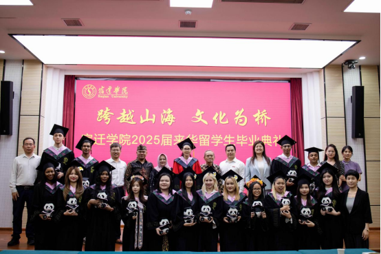 2025年6月19日下午,宿迁学院图书馆一楼学术报告厅内洋溢着温情与荣光,2025届来华留学生毕业典礼以 “跨越山海・文化为桥” 为主题隆重举行。党委常委、统战部部长、教务处处长陆海霞,学工处处长毛广,经济管理学院院长肖艳,国际教育学院院长沈刚等领导出席典礼,与16名毕业生、家长代表及师生共同见证这一重要时刻。