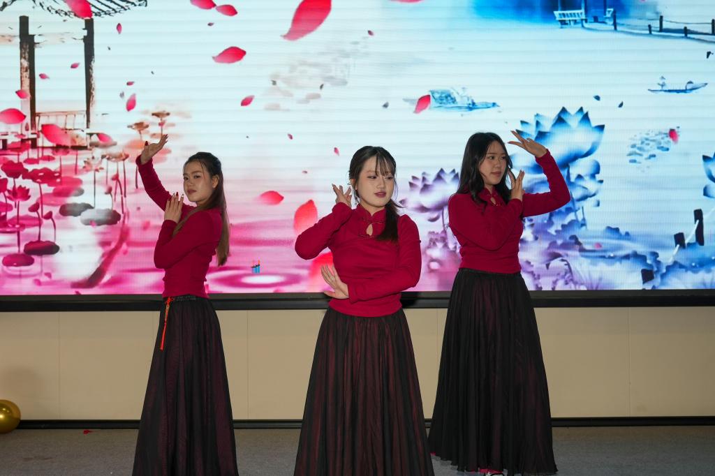墨香传福、巧手编结、共品年味……活动现场,来自印度尼西亚和老挝的同学带来各具特色的舞蹈表演,在欢声笑语中,大家还一起动手,把新春祝愿和对生活的希望包进小小的饺子里,在享受欢乐时光的同时,丰富多彩的活动让身处异乡的留学生们感受到了浓浓的中国“年味道”,现场一派祥和温馨的景象。